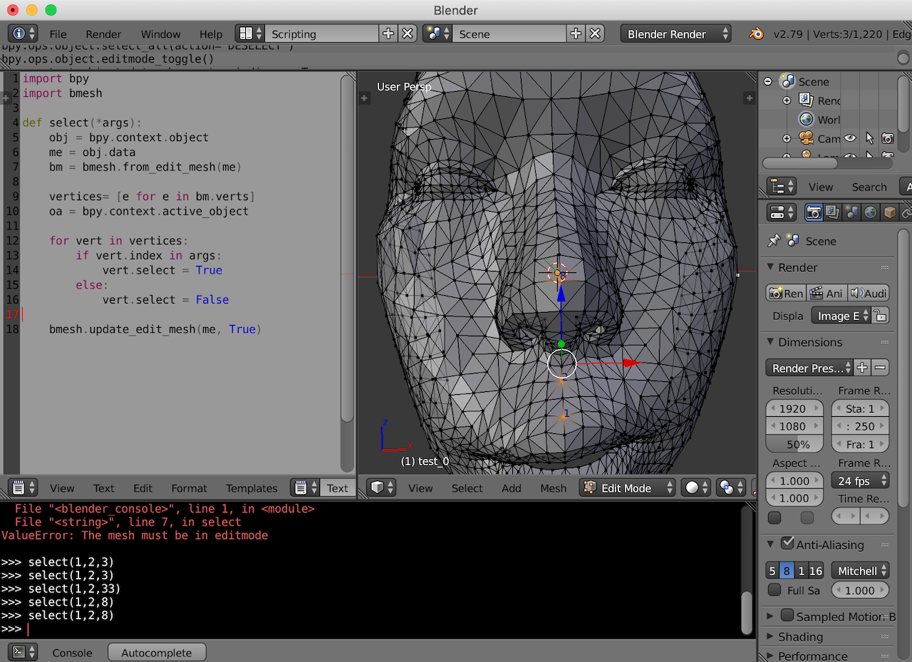 Computer특정 Vertex ID(번호)에 해당하는 점이 모델에서 어디에 위치해 있는지 알아야 할 필요가 있어서 그런 툴을 만들어 봐야 하나 생각해 봤는데, Blender에서 파이썬 스크립트 사용하여 해결할 수 있었다. 이에 대한 내용을 정리해 보았다.